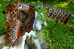 Sets. Zumindest einmal ein Teil unserer neuen Arbeiten hat Einzug in die Galerien erhalten, so findet ihr dort neu: - Sunglance, ein strahlendes, gebissloses Zaum- und Zügelset - Heart of Horses, ein ganzes Set für Ross und Reiter, zudem mitunter auch eine Roßstirn gehört - Black Dragon of the Abyss, eine finstere Drachenroßstirn samt Kanz - Celtic Warrior, ein leichter Roßharnisch samt Kreuzzaum und Zügeln - neue Bilder von den Shire-Hengsten Ivanhoe und Rascal - die Sättel Winged Unicorn, When myths become true und Vegvisir  |