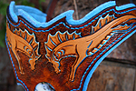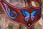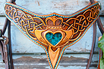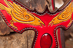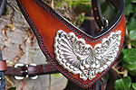 bis hin zum fertigen Werk am Pferd oder Hund zu finden sind. Da in der Zwischenzeit natürlich bereits wieder einige Arbeiten entstanden sind, gibt es auch viel Neues zu entdecken: - die Zäume Shamrock, Bonds of Claddagh und Manitou - die gebisslosen Zäume Skulblaka, Tialdas Little Ivy, Royal Flower, Musketeers Credo, Dance of Dragons und Skyhunter - die Messerscheide Little Dragon.  |