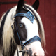 Ein eleganter Englischzaum in schwarz und hellblau mit weißer Kontrastnaht.