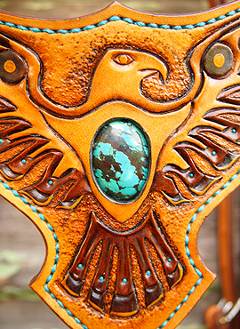 einen tibetischen Türkis ein. Die Farben buckskin, walnuss