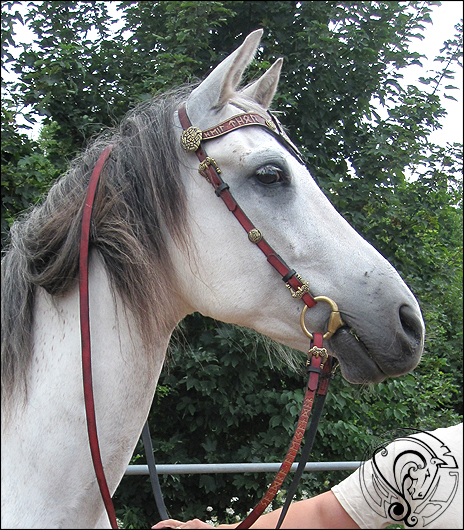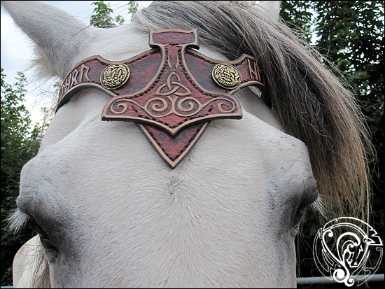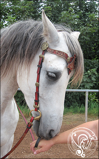 Der elegante Stirnriemen wurde mit Runen punziert, zudem