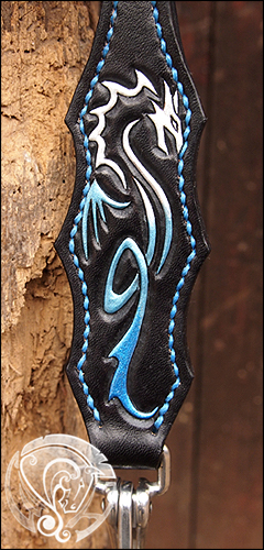 Der Stirnriemen dieses Zaumes zeigt zwei Drachen in eisigen