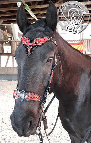 Ein Zaum- und Zügelset zum Thema Wikinger/ Drachen.