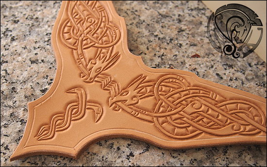 Punzierungen in Form von Drachenknoten sowohl auf dem Stirn-