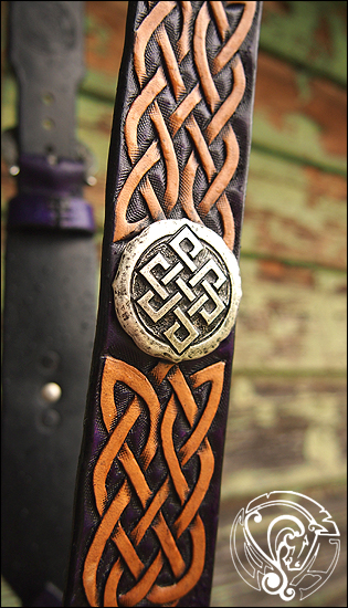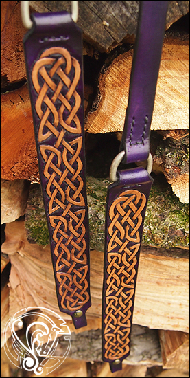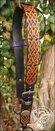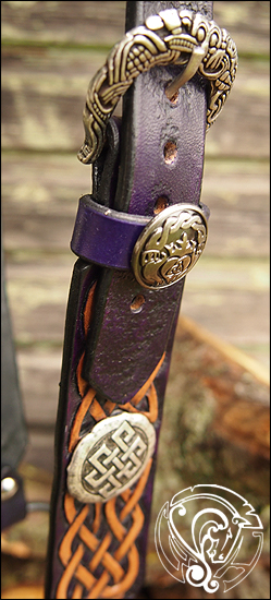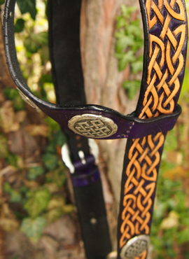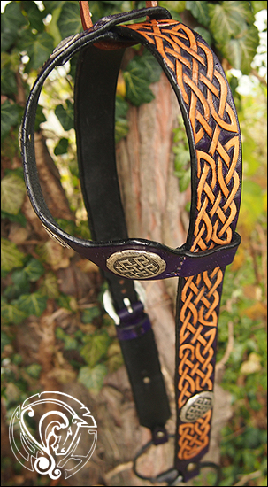 Ein extra breiter Einohrzaum in tiefem Violett, mit naturfarbener keltischer Punzierung und keltischen