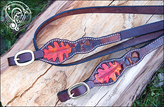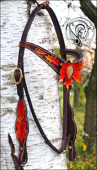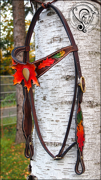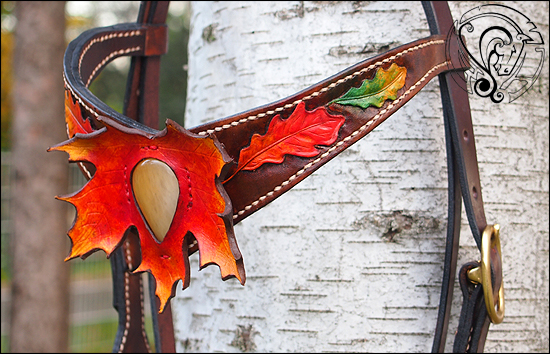 Dunkelbrauner Edelstein-Westernzaum zum Thema Herbstwald,