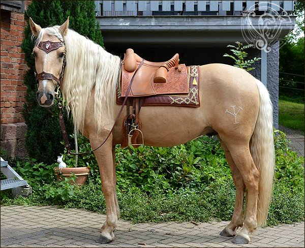 sich auf Stirn- und Nasenriemen, auch der besonders geformte Genickriemen ist aufwendig punziert.