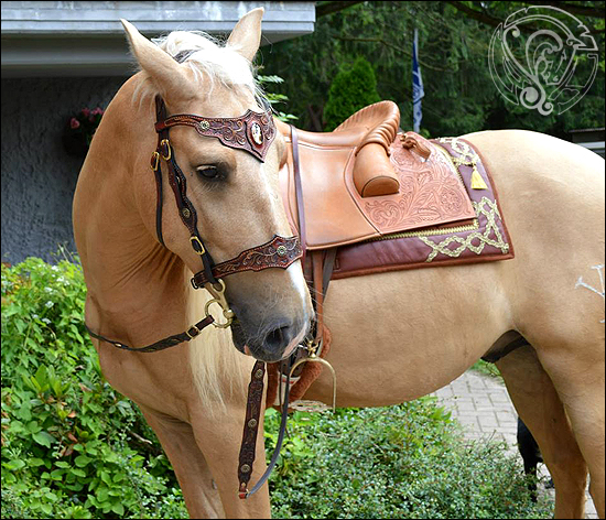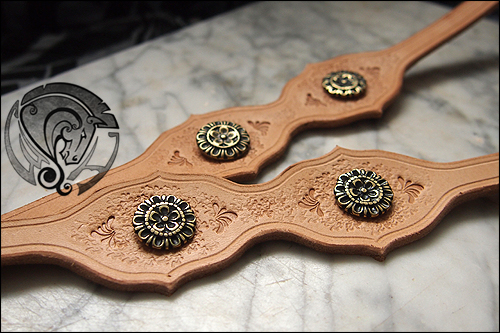 Dementsprechend prunkvoll ist der Zaum ausgefallen: zahlreiche, detailreiche florale Punzierungen befinden