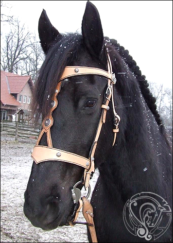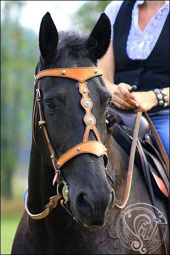 Schlichter, naturfarbener Barockzaum mit kleinen Beschlägen in