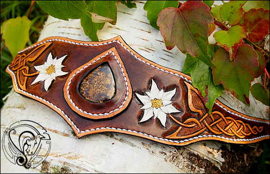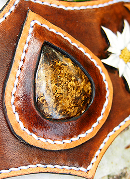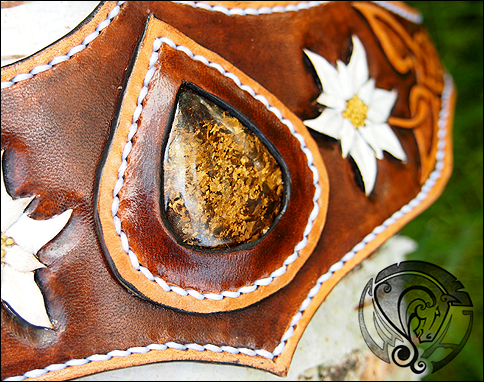 Ein besonderer Edelstein-Stirnriemen in dunkelbraun und