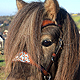 Ein kleines, gebissloses Zäumchen mit Ganaschenriemen und