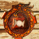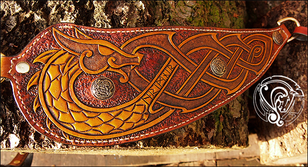 Wikinger-Drachen punziert und schließt einen Mondstein ein.