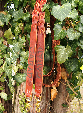 Der Namenszug wurde eingebrannt und von Prägungen in keltischer Knotenform eingefasst.