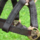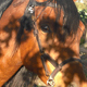 Das Sidepull und die Zügel sind in dunkelbraunem Leder