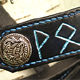 mit Runen geprägt, die einen hellblauen Metallschimmer