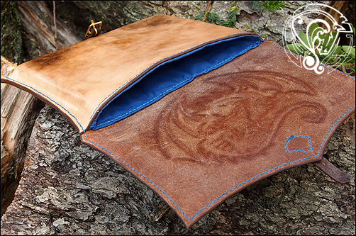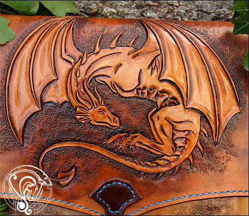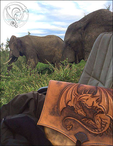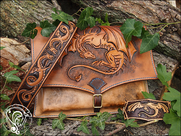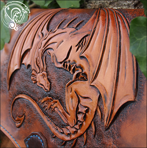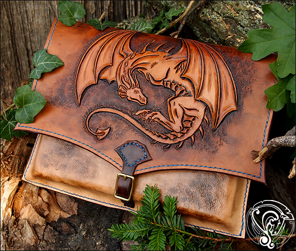 Fotos mitunter aus Afrika (!) beweisen. Zu dem Set gehören bislang noch ein Hundehalsband und ein Armband.. Die Tasche ist naturfarben und antik behandelt und als iPad-Schutz gedacht. Dafür ist sie mit blauem Innenfutter ausgestattet; auch die Handnaht ist dazu passend in blau gehalten. Die Klappe zeigt eine große Drachenpunzierung mit angeformten Flughäuten und Bauchschuppen. Mehr über Perdita und ihre Arbeit könnt Ihr mitunter hier erfahren: Hundeakademie Rettet das Nashorn
