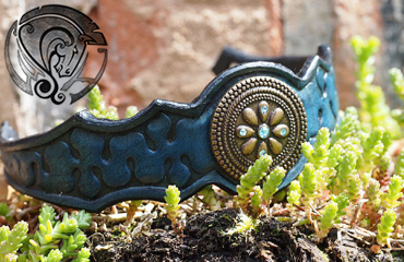 Auch dieses Armband war als kleines Geschenk gedacht. Passend zu dem Navajo-Beschlag wurde es türkis / hellblau gefärbt und mit einem verspielten Muster punziert.